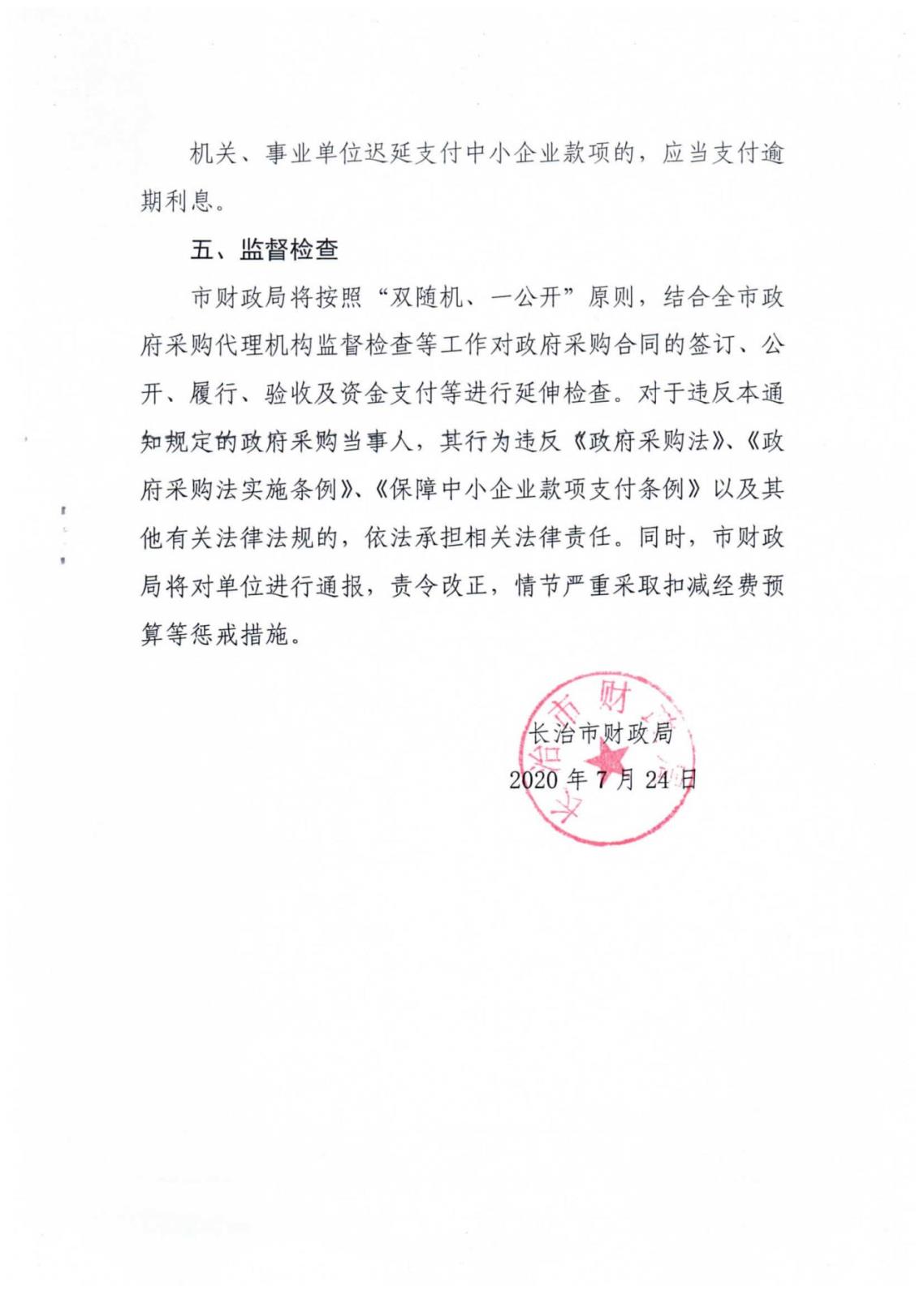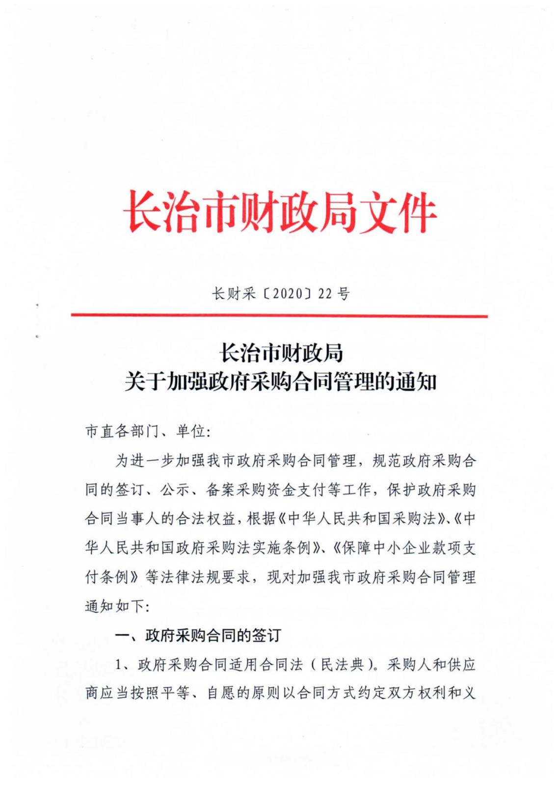 《长治市财政局关于加强政府采购合同管理的通知》长财采{2020}22号